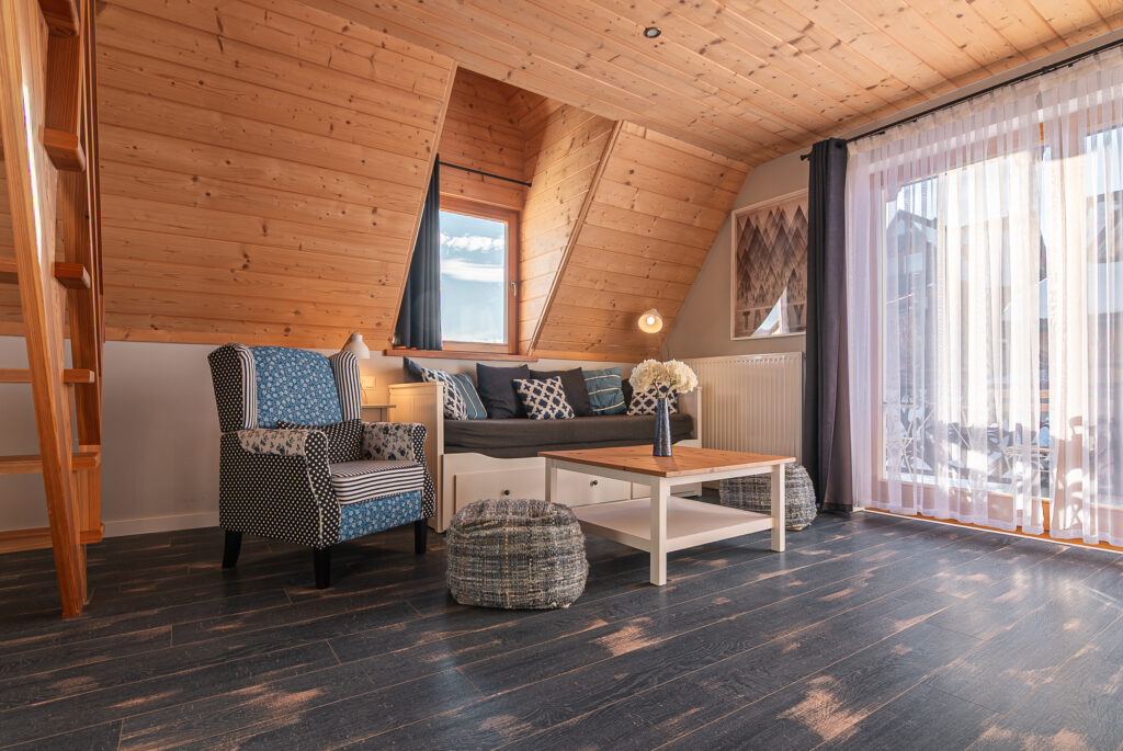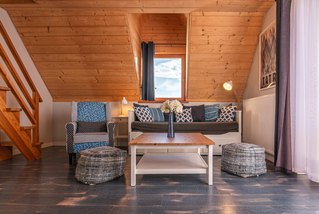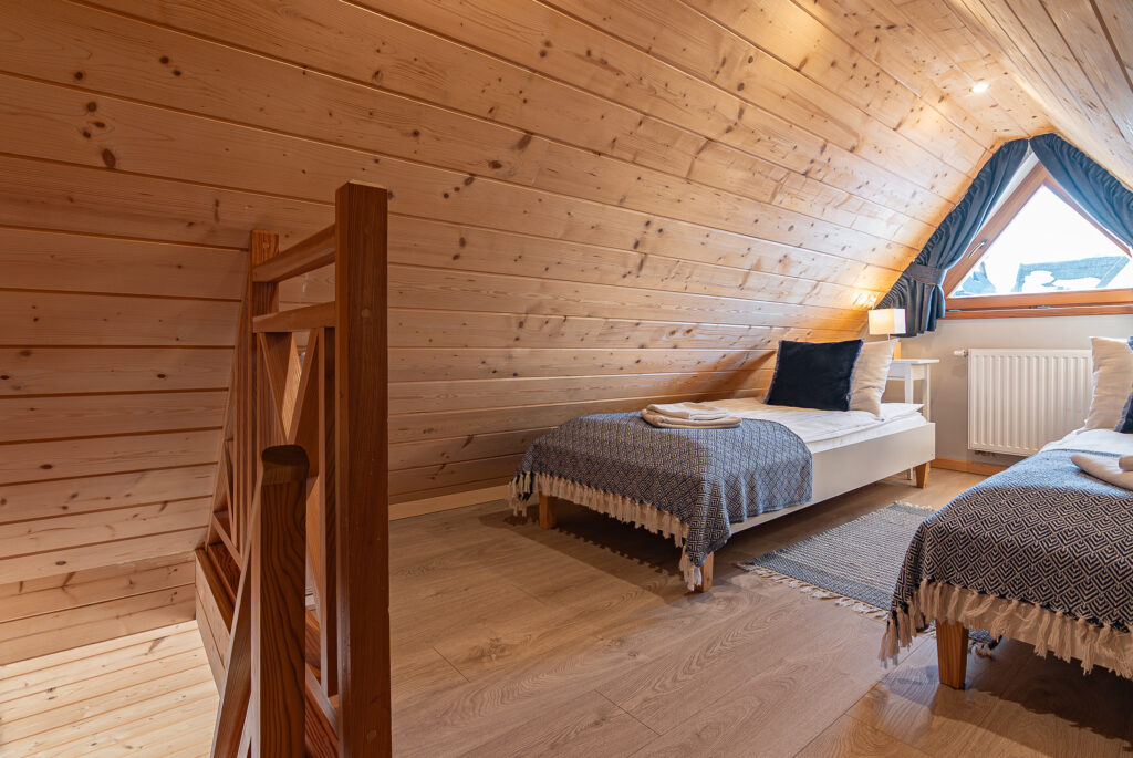 - Sypialnia na antresoli z dwoma pojedynczymi łóżkami